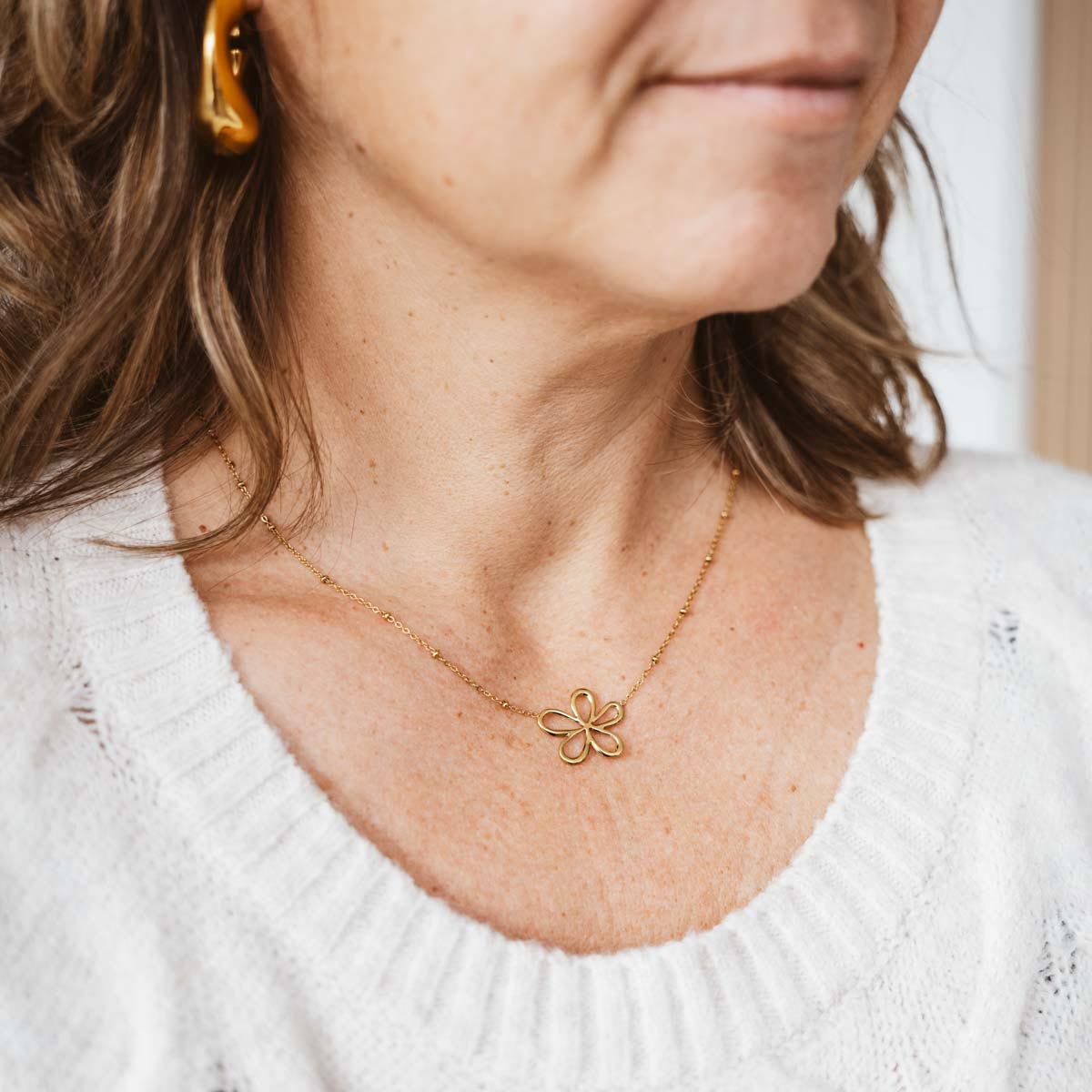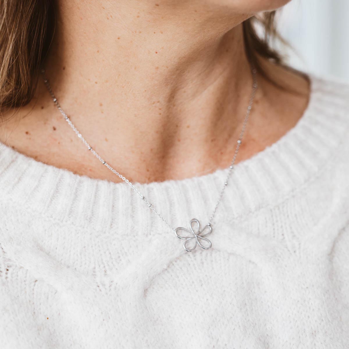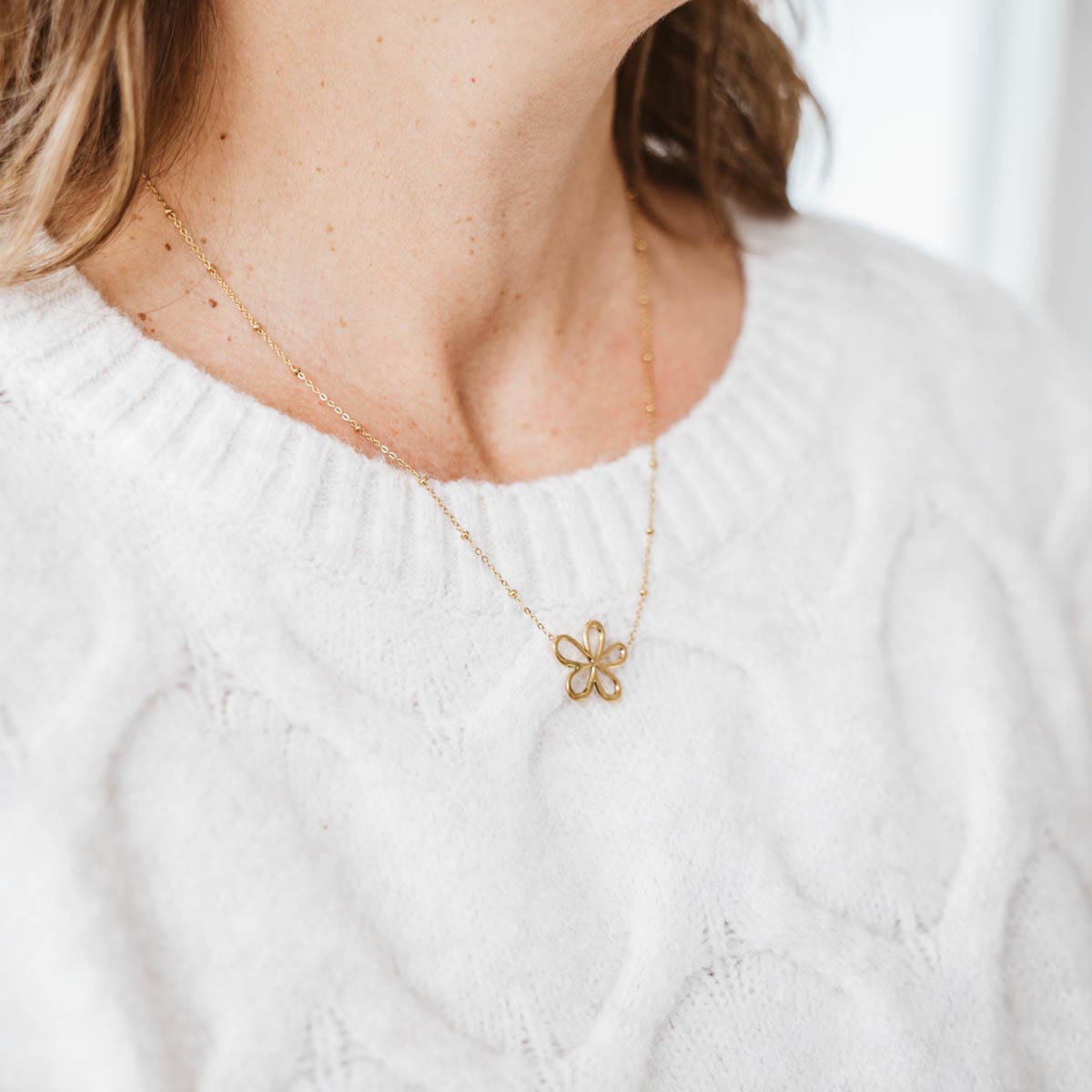 Die Halskette „daisy“ strahlt schlichte Eleganz aus. Der zarte Blumenanhänger verleiht deinem Look eine verspielte, natürliche Note, während die feine Kette mit ihren dezenten Details Leichtigkeit und Stil vereint. Ob im Alltag oder zu besonderen Anlässen – „Daisy“ ist das perfekte Accessoire für einen sanften, femininen Akzent.