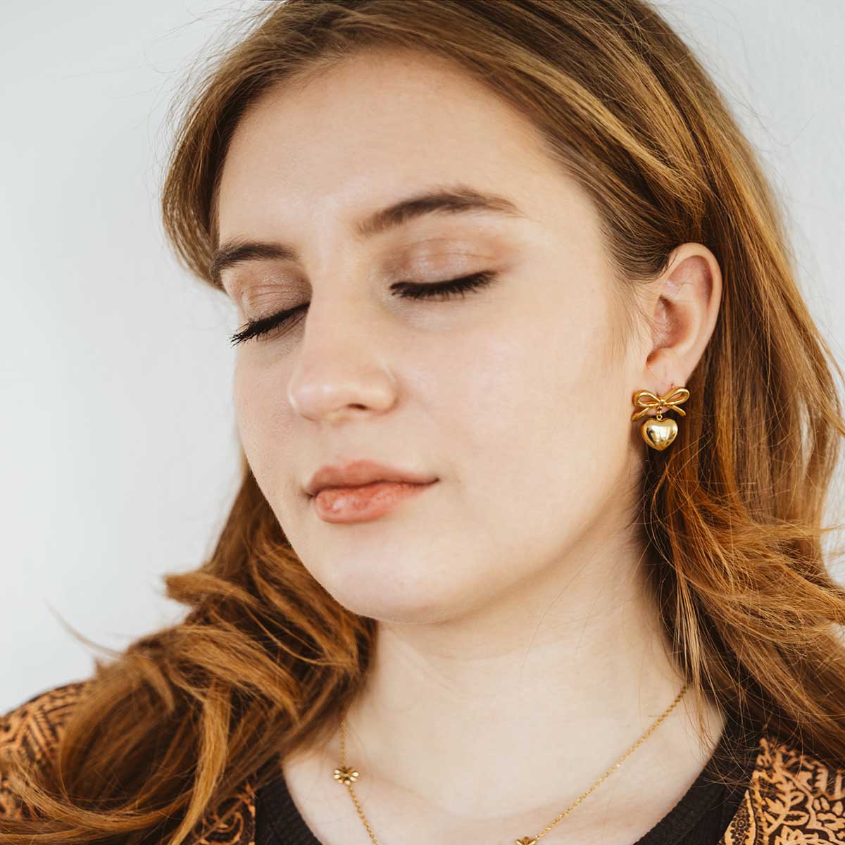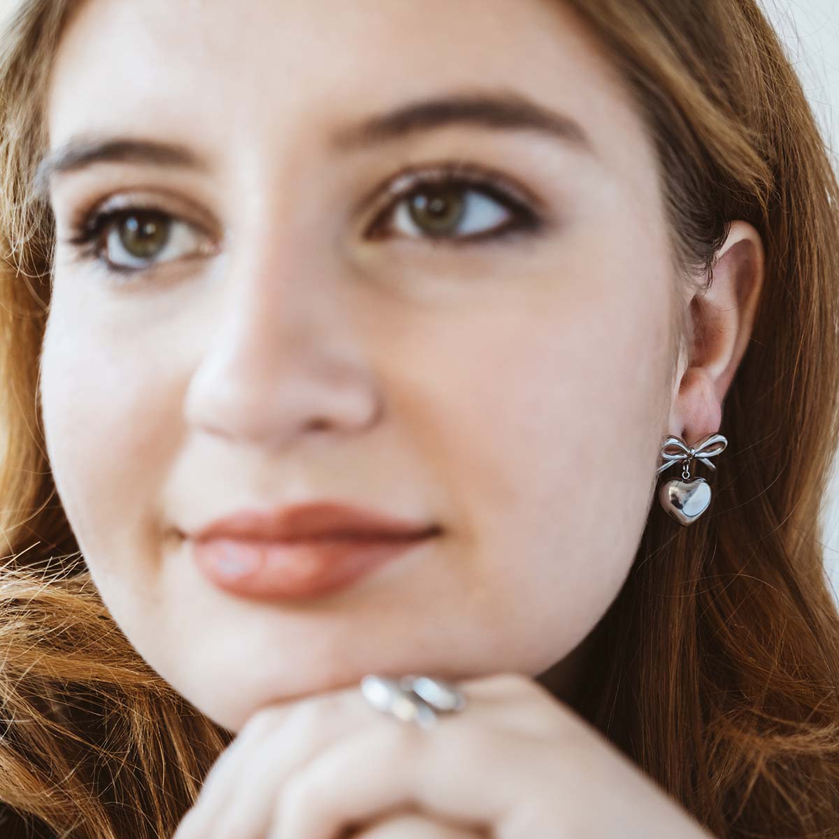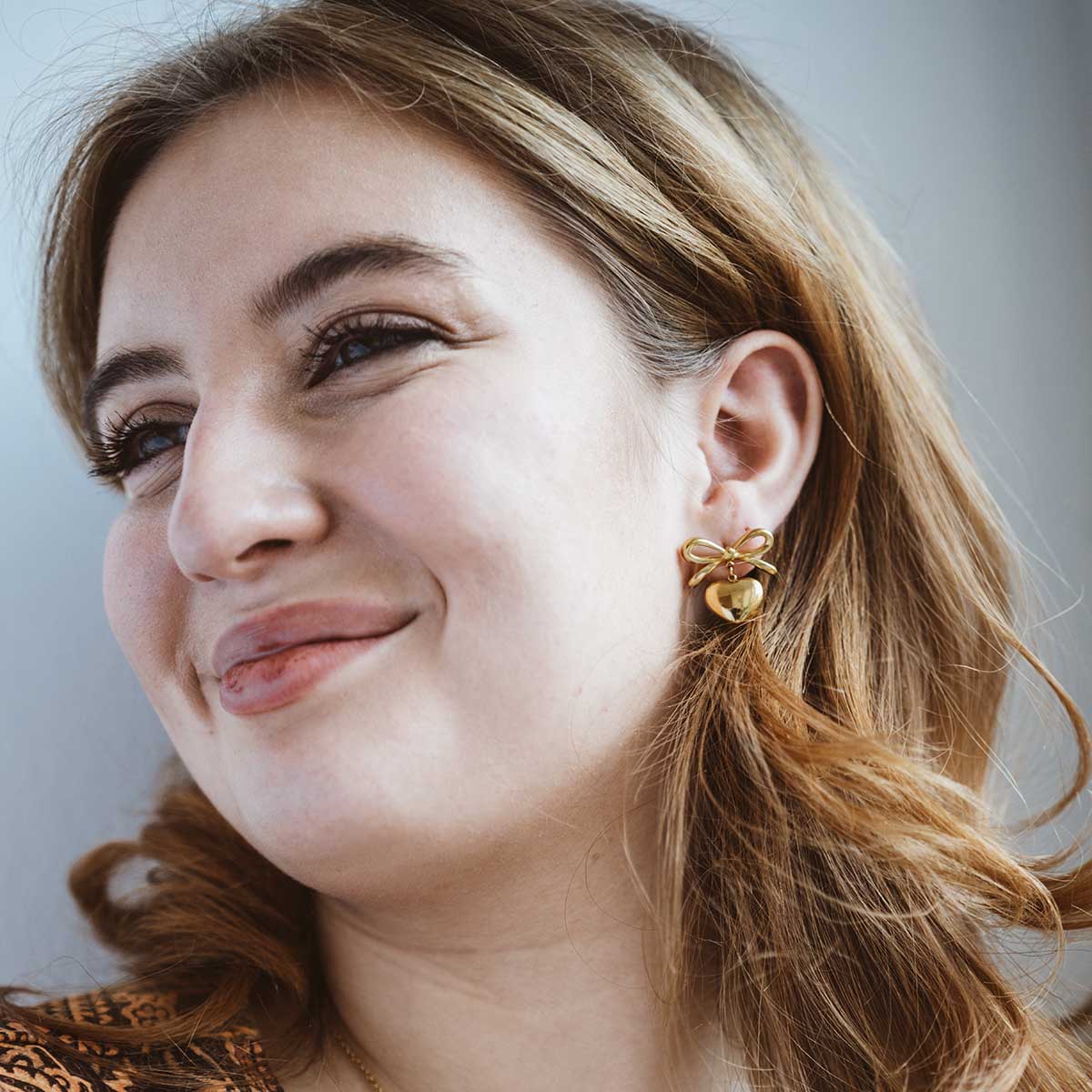 Die "from the heart" Ohrringe sind ein wahrer Ausdruck von Liebe und Eleganz. Die charmante Kombination aus filigraner Schleife und Herzanhänger verleiht deinem Look eine romantische Note. Perfekt für besondere Anlässe oder um deinem Alltagsoutfit etwas Liebe zu schenken. Gefertigt aus hautfreundlichem und langlebigem Edelstahl.