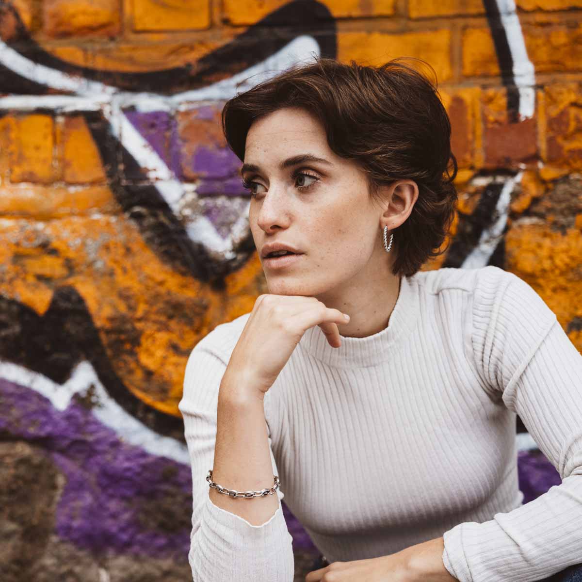 Unser „Keep Up“-Armband ist aus großen, glänzenden Kettengliedern gefertigt und ergänzt sich ideal mit einer Halskette aus dickeren Kettengliedern. Dieses Armband im auffallenden Look und lässt sich vielseitig kombinieren – perfekt, um deinem Stil einen modernen und zugleich lässigen Touch zu verleihen.