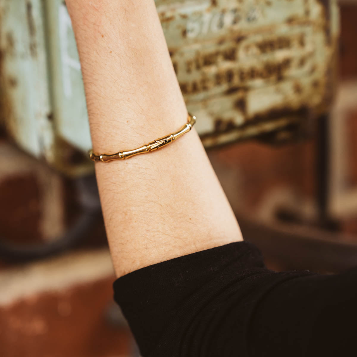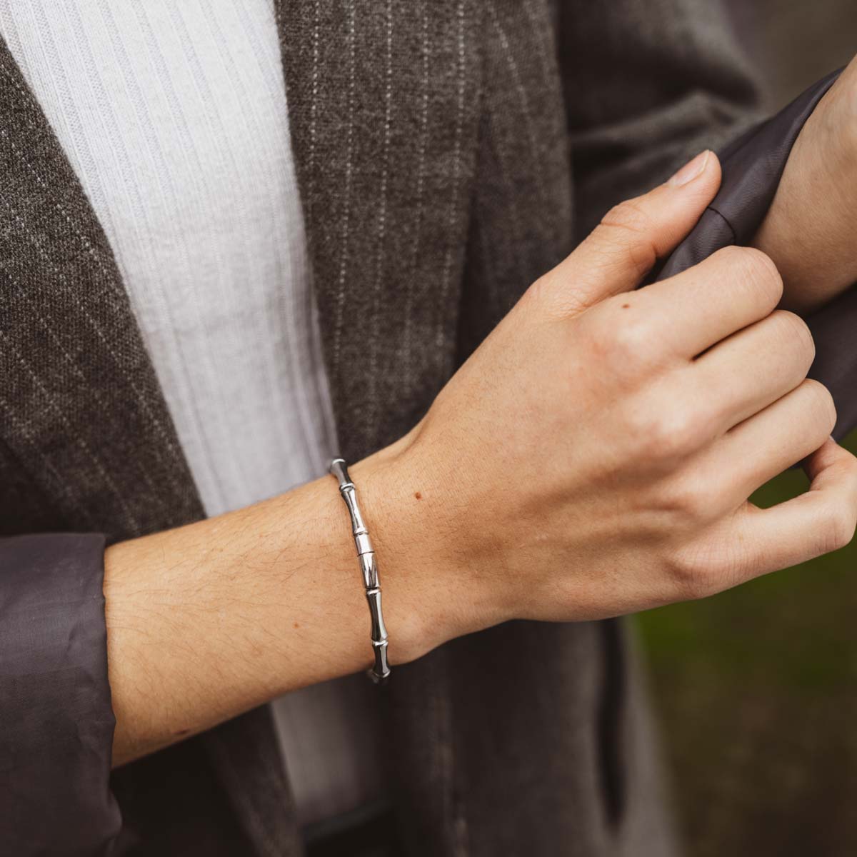 Dieses Armreif bringt eine natürliche, elegante Note in deinen Look. Mit seinem Design, das an Bambus erinnert, vereint es einen Hauch von Exotik mit modernem Stil. Perfekt für alle, die nach einem dezenten Accessoire mit besonderem Detail suchen, das sich vielseitig kombinieren lässt.