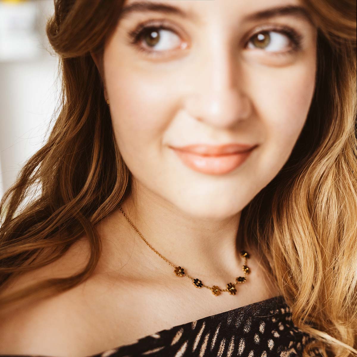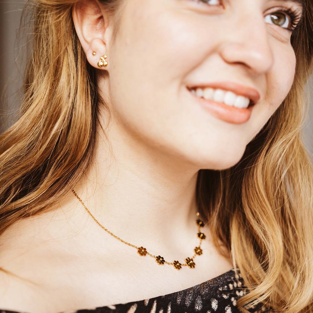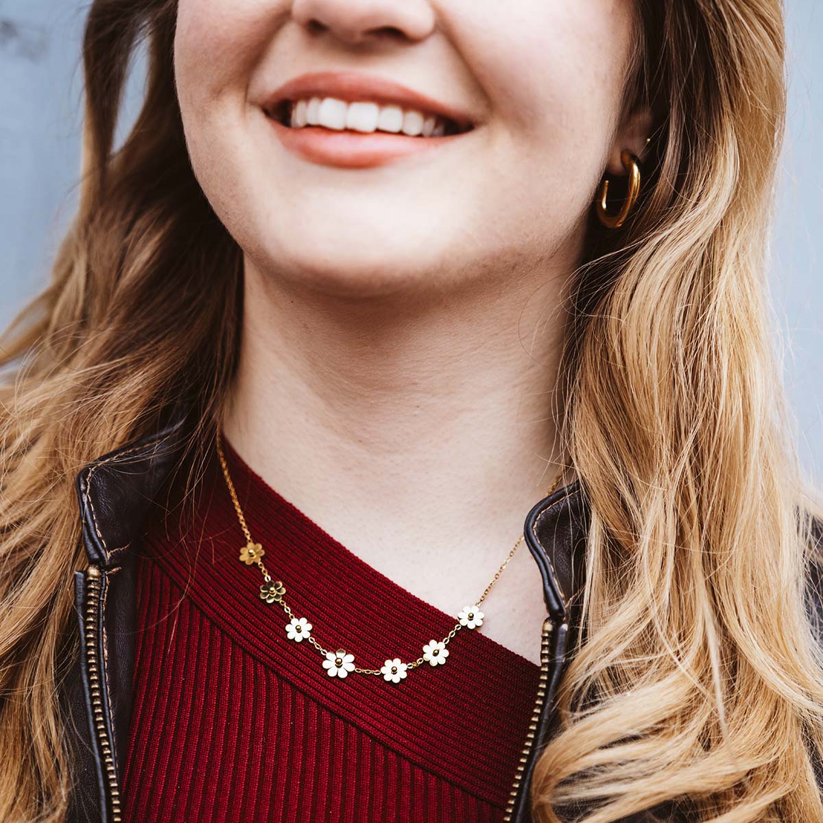 Florale Leichtigkeit: Die "mimi" Halskette bringt mit ihren feinen Blumenanhängern Frische und Eleganz in deinen Look. Ein Schmuckstück, das sich ideal für romantische Outfits oder besondere Momente eignet.