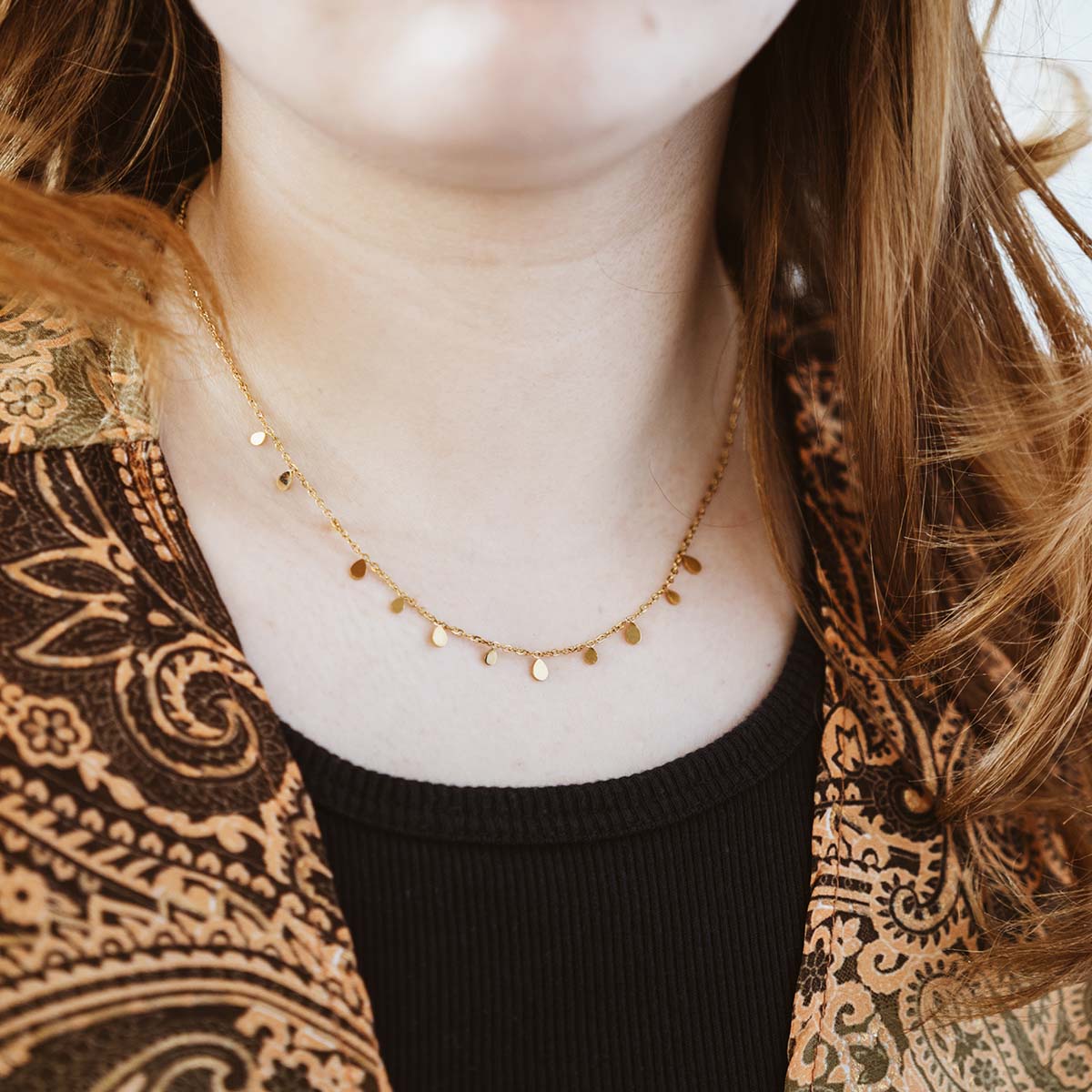 Schütze den Schmuck vor übermäßigem Kontakt mit Chlor, Salzwasser, Chemikalien oder starkem Abrieb, um die Optik zu bewahren.