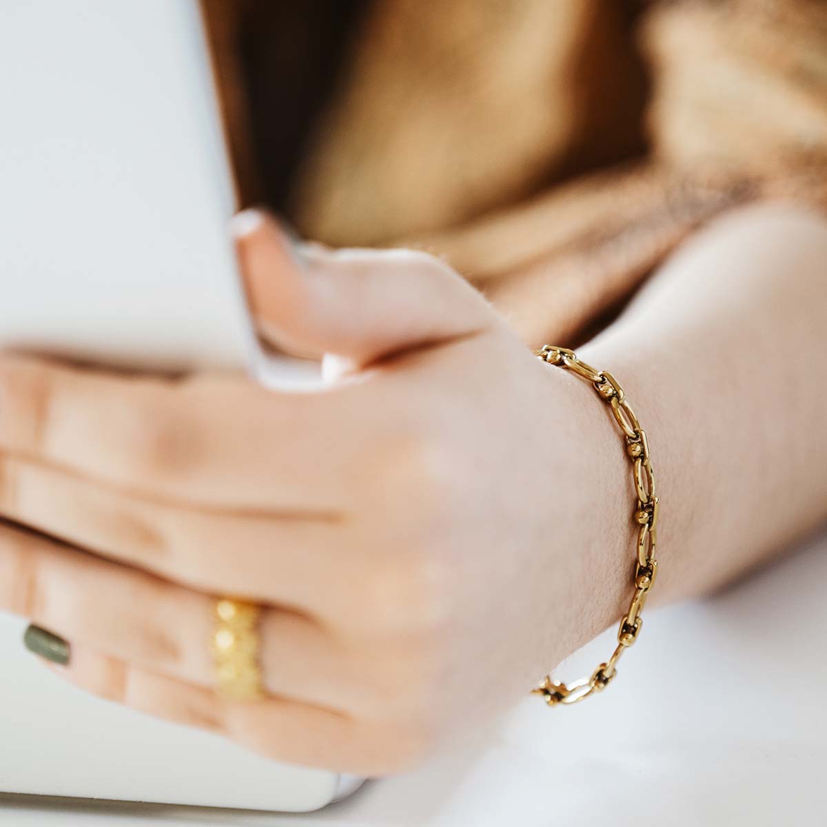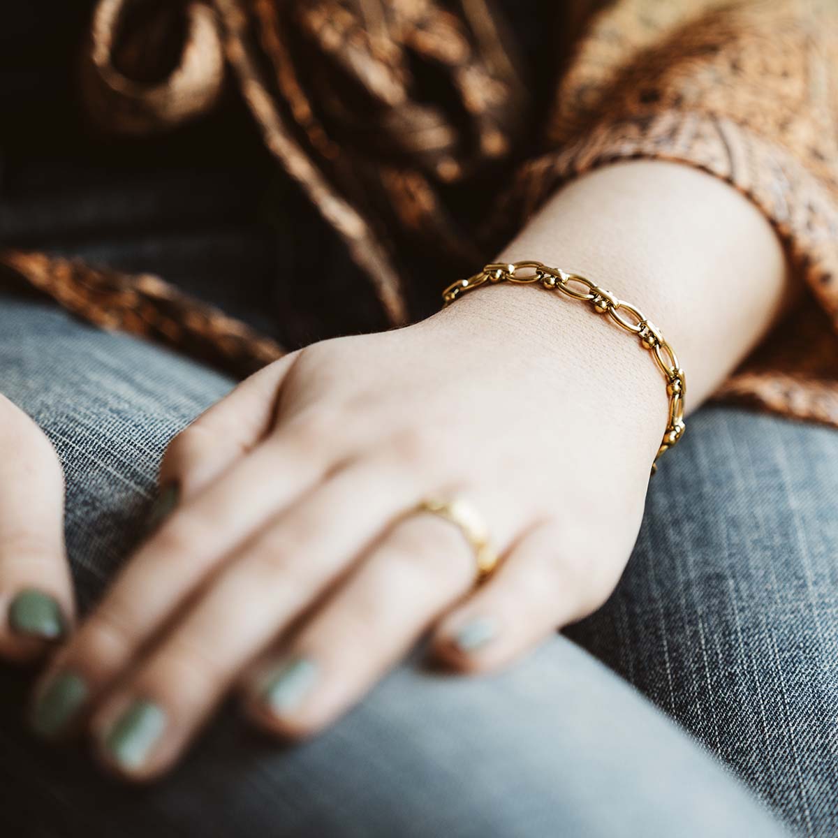 Schütze den Schmuck vor übermäßigem Kontakt mit Chlor, Salzwasser, Chemikalien oder starkem Abrieb, um die Optik zu bewahren.