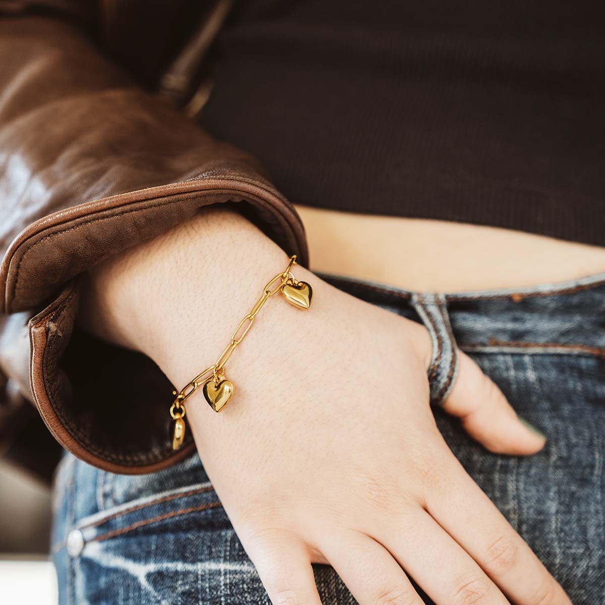 Das "three hearts" Armband ist die perfekte Kombination aus zeitlosem Design und romantischen Details. Die filigrane Gliederkette wird durch drei glänzende Herzanhänger ergänzt, die für Liebe und Stil stehen. Dieses Schmuckstück ist ideal für romantische Anlässe, als Geschenk oder um deinem Look eine feminine Note zu verleihen.